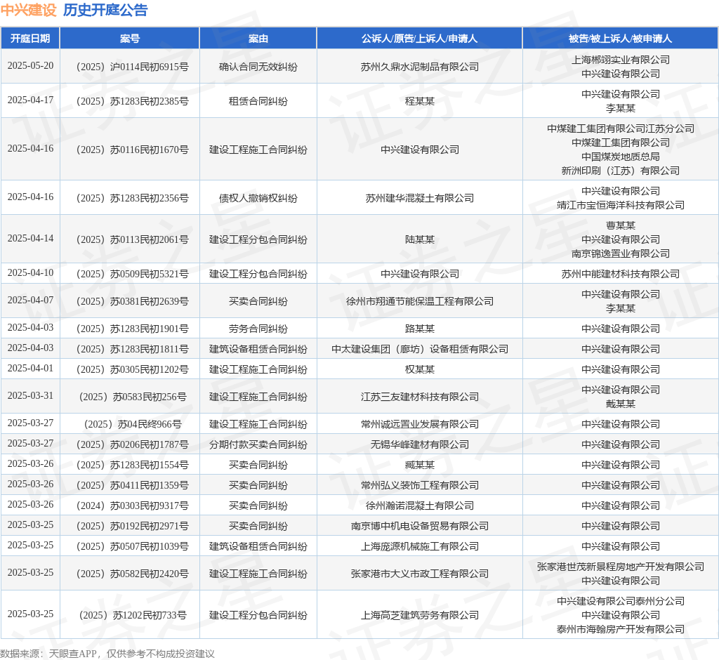 本站消息,根据天眼查APP显示,近日公布了一则中兴建设有限公司作为被告/被上诉人的开庭公告,详细内容如下: